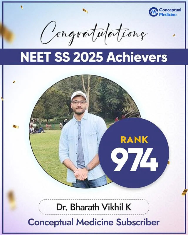 This year’s results celebrate the dedication and strong clinical understanding of our students. Their outstanding performance in NEET SS 2025 reflects the power of concept-driven learning and focused preparation at Conceptual Medicine.